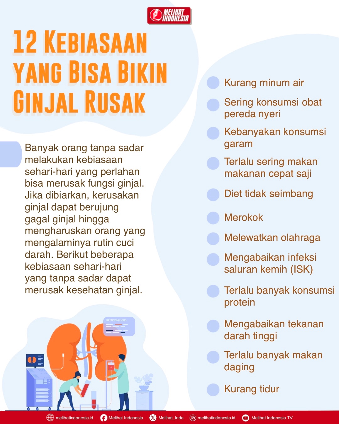 MELIHAT INDONESIA – Banyak orang tanpa sadar melakukan kebiasaan sehari-hari yang perlahan bisa merusak fungsi ginjal.