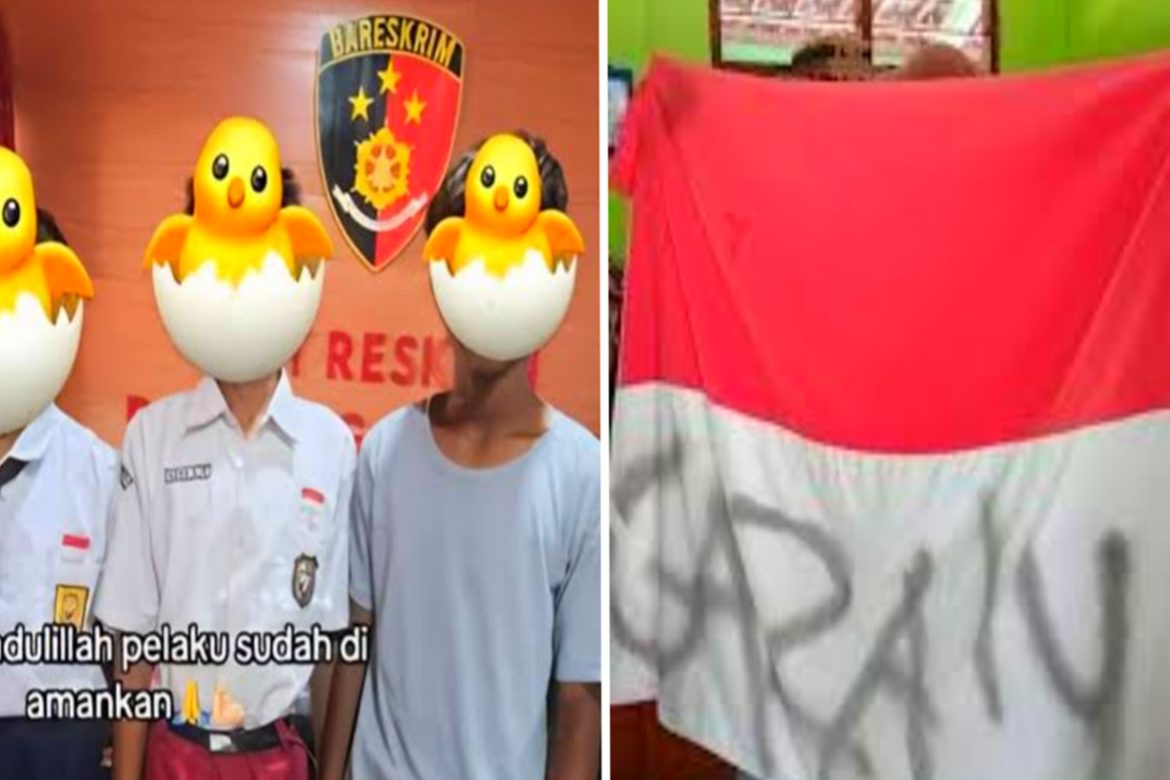 Tiga bocah asal Kecamatan Gondang, Sragen, Jawa Tengah, mencoreng nama baik bangsa setelah aksi nekat mereka mencoret bendera Merah Putih dengan tulisan “Gaza14”. Ketiganya kini terancam hukuman penjara hingga 5 tahun.