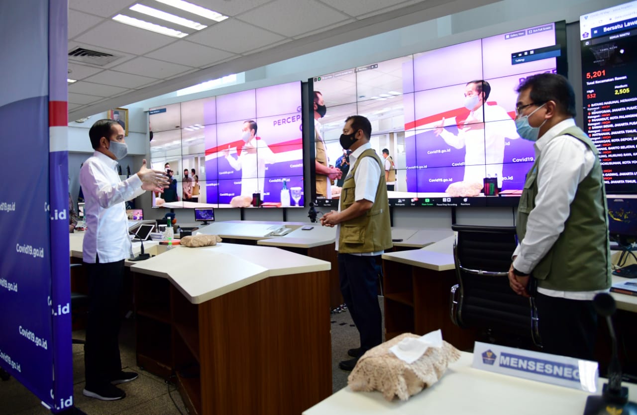 Pembukaan kembali sejumlah sektor menuju fase masyarakat yang produktif dan aman dari Covid-19 harus melalui Proses yang ketat dan sangat hati-hati. Saat meninjau kantor Gugus Tugas Percepatan Penanganan Covid-19 di Graha Badan Nasional Penanggulangan Bencana (BNPB), Jakarta Timur, pada Rabu, 10 Juni 2020, Presiden Jokowi menyampaikan lima arahan terkait adaptasi kebiasaan baru agar masyarakat tetap Dapat produktif dan aman dari penularan Covid-19.