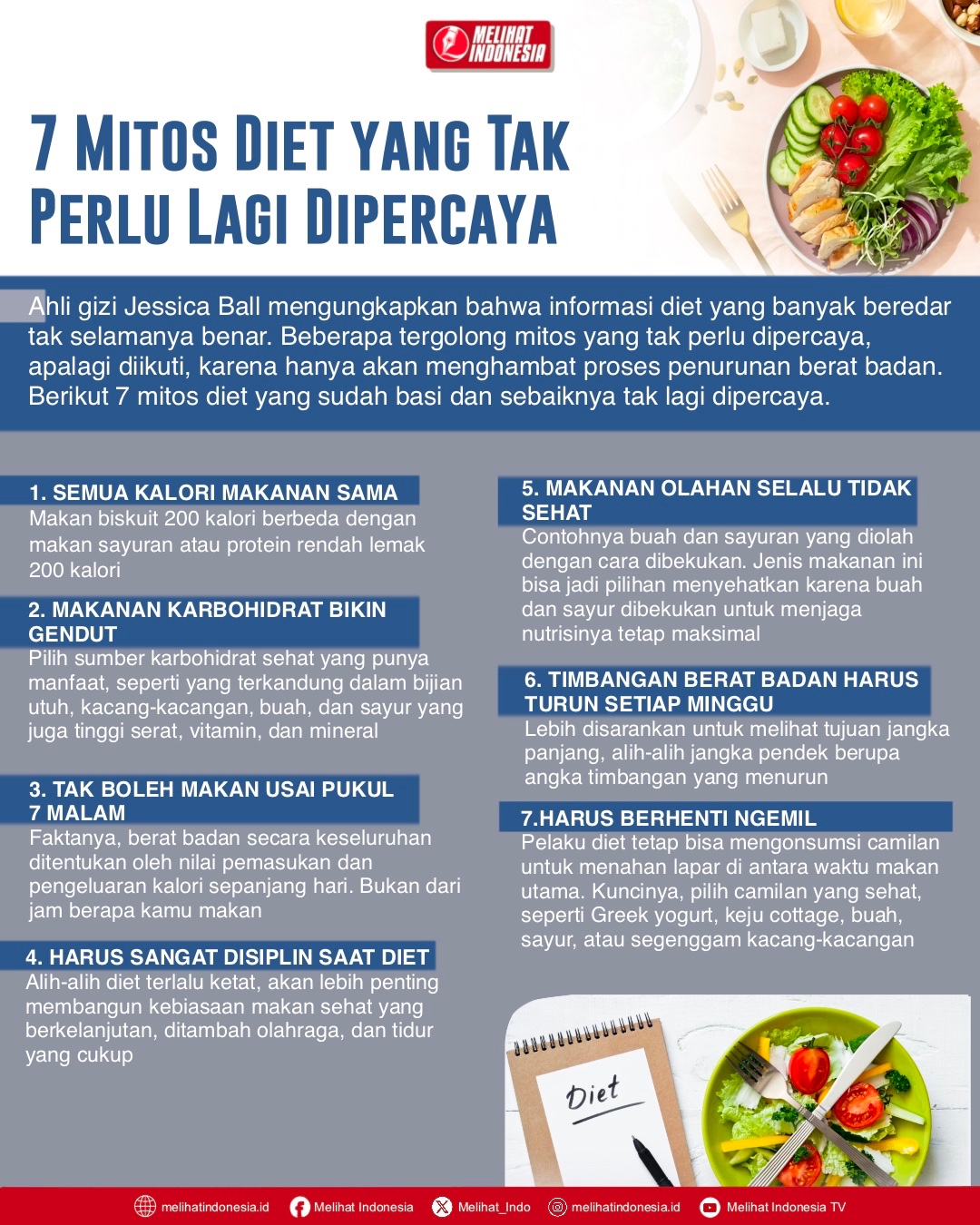 Berikut 7 mitos diet yang sudah basi dan sebaiknya tak lagi dipercaya.