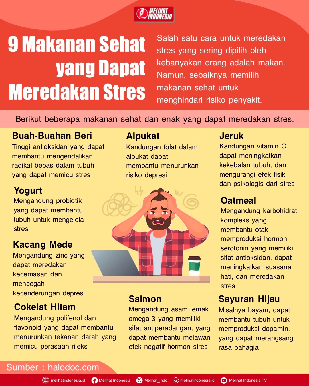 MELIHAT INDONESIA – Salah satu cara untuk meredakan stres yang sering dipilih oleh kebanyakan orang adalah makan. Namun, sebaiknya memilih makanan sehat untuk menghindari risiko penyakit.