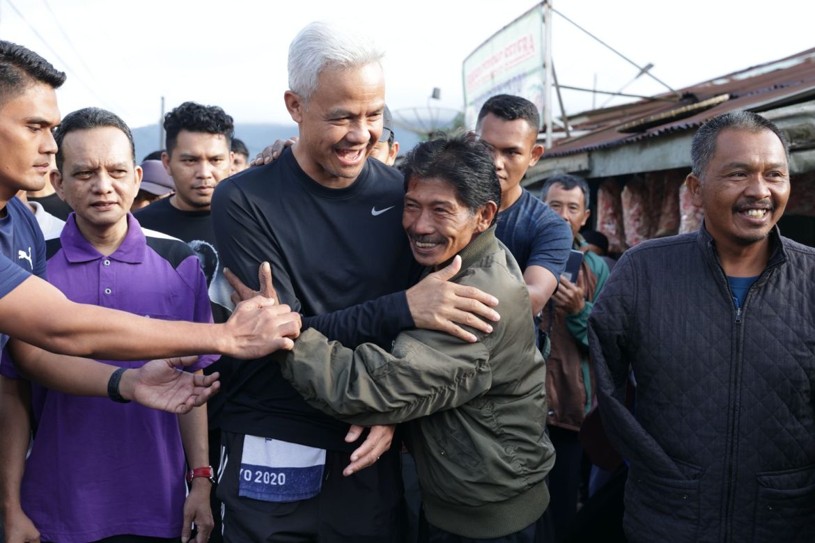 BANJARNEGARA – Ganjar Pranowo mengawali pagi dengan blusukan ke Pasar Pahingan Kalibening, Banjarnegara, Selasa (16/1/2024) setelah semalam menginap di rumah warga.