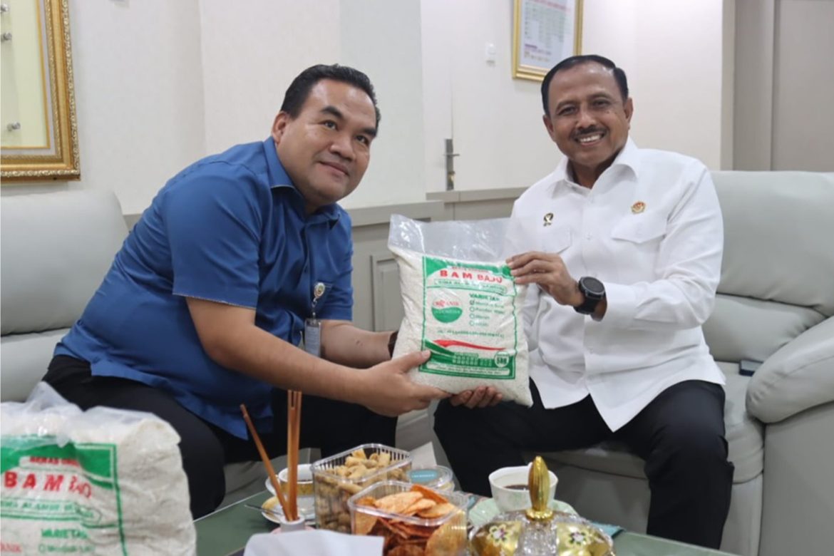 “Alhamdulillah, kami dapat bersilaturahmi dan menyerahkan langsung beras kebanggaan daerah kami ini kepada Mayjen TNI Dr. Heri Wiranto, S.E., M.M., M.Tr. (Han). (Deputi Bidang Koordinasi Politik Dalam Negeri Kemenko Polkam RI).”, ungkapnya lebih lanjut.