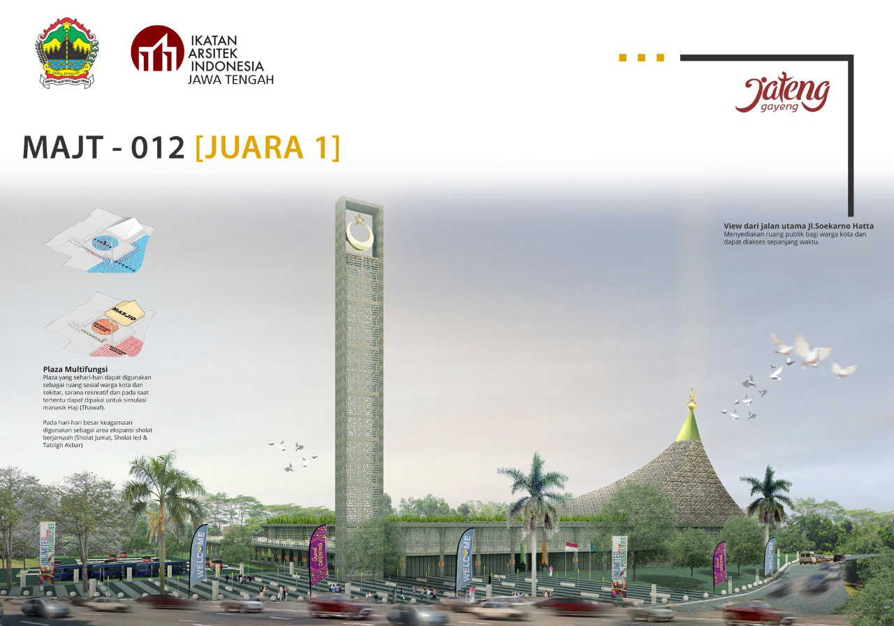 SEMARANG – Setelah melalui proses panjang dan perdebatan alot dari para dewan juri, sayembara desain Masjid Agung Jawa Tengah (MAJT) Magelang akhirnya menemukan pemenang. Adalah Ade Yuridianto, arsitek asal Bandung dengan kode desain MAJT 012 menjadi pemenangnya.