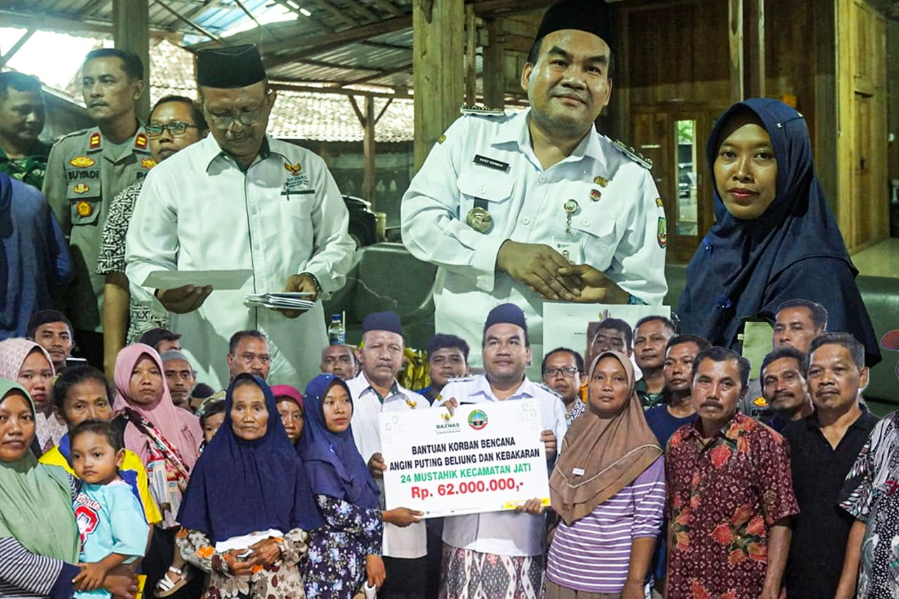 Ketua Baznas Kabupaten Blora, Sutaat, menjelaskan bahwa total bantuan yang disalurkan mencapai Rp62 juta, diperuntukkan bagi 23 rumah terdampak angin puting beliung dan 1 rumah korban kebakaran.