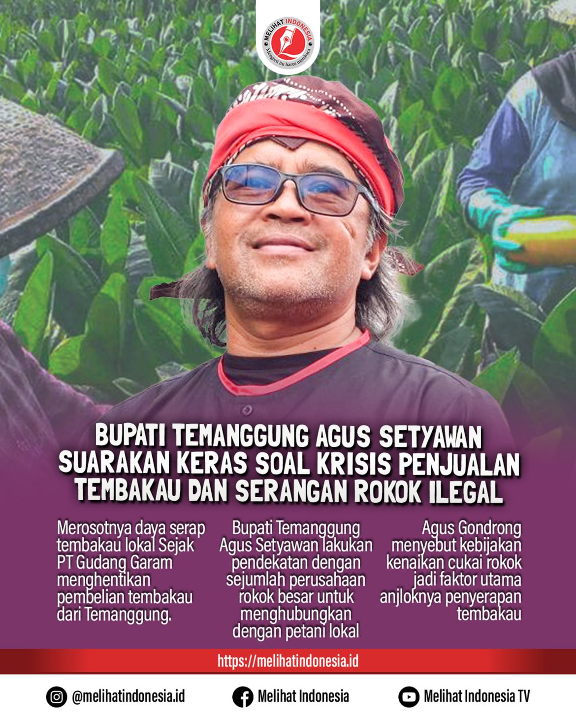 “Kami berharap pemerintah pusat segera hadir untuk mencarikan solusi bersama. Jangan sampai hajat hidup para petani dan buruh rokok terganggu karena kebijakan yang tidak berpihak,” tutupnya.