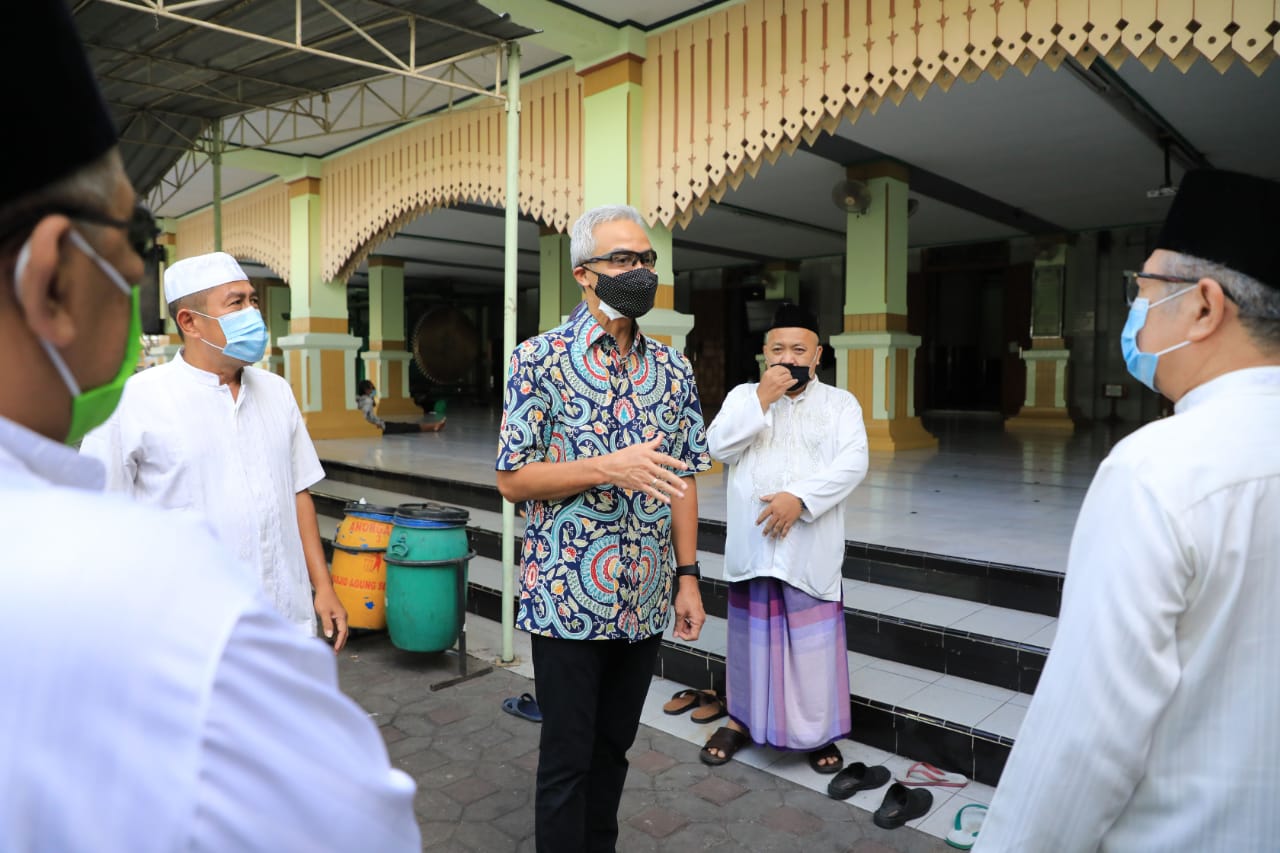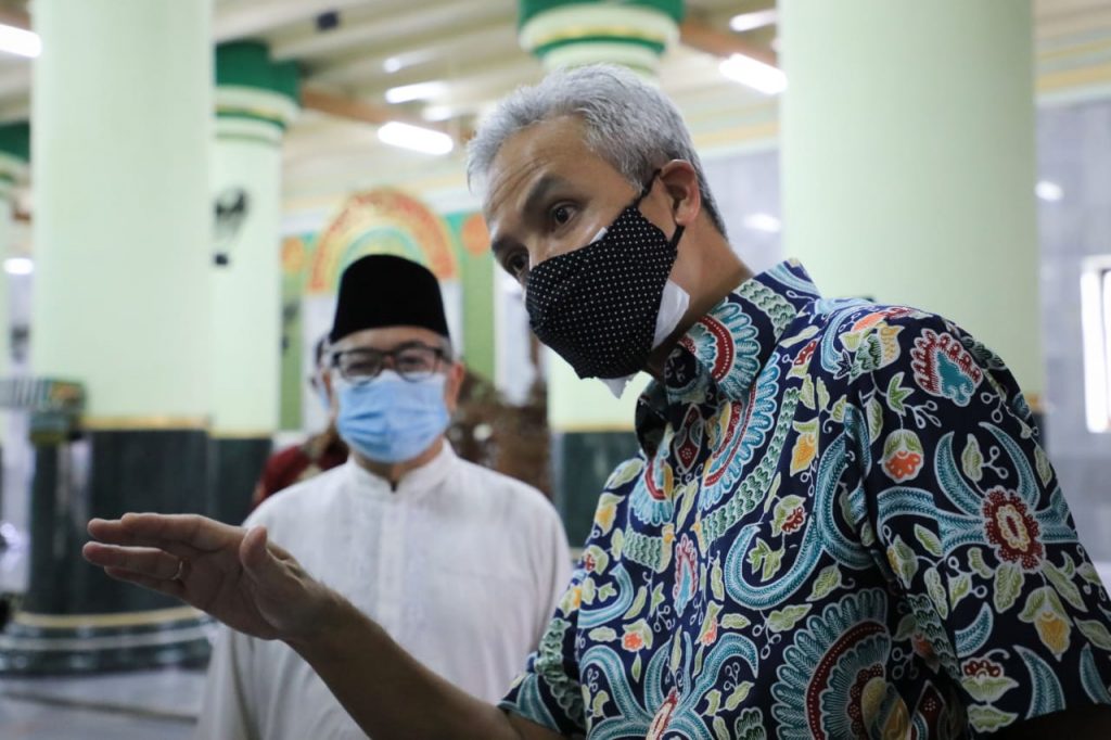 Usai dari gereja, Ganjar juga mengunjungi Masjid Agung Kauman, Semarang. Di tempat itu, Ganjar sudah melihat persiapan yang dilakukan takmir masjid. Takmir sudah membuat batas jamaah dengan menyilang lantai dengan solasi.