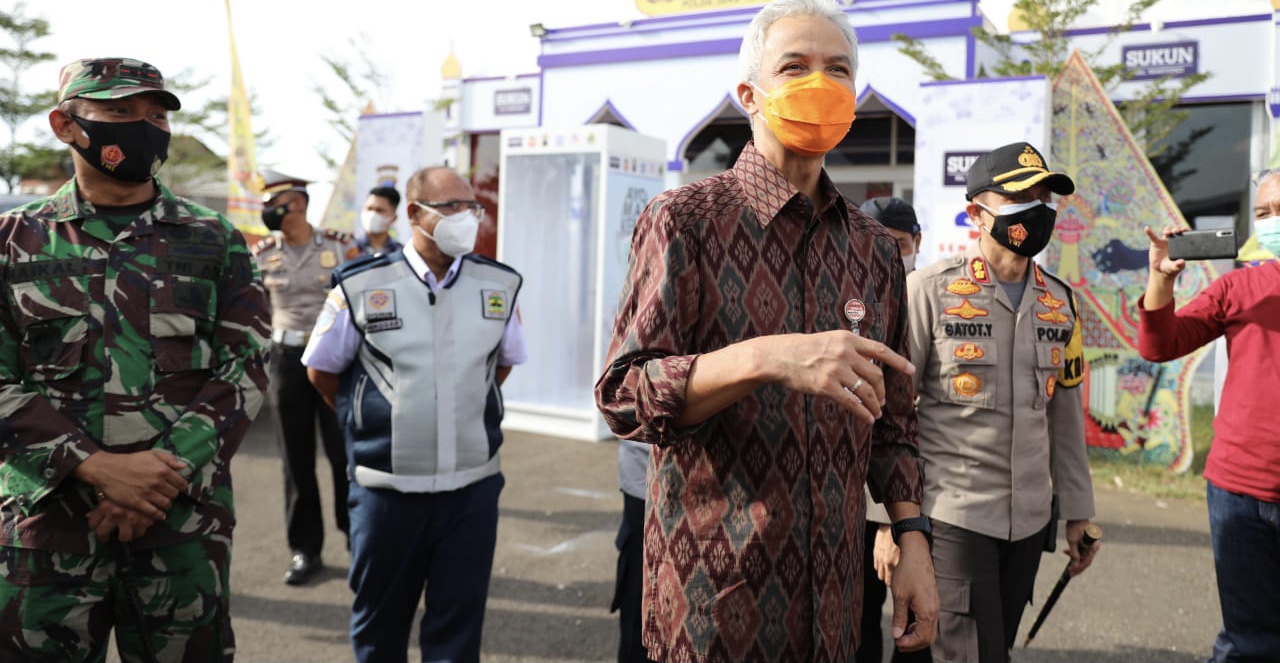 BATANG – Gubernur Jawa Tengah, Ganjar Pranowo mengecek pelaksanaan random test yang digelar Polrestabes Batang di rest area KM379 arah Jakarta-Semarang, Selasa (4/5). Random test berupa rapid antigen itu dilakukan untuk mengantisipasi adanya pemudik yang positif Covid-19.