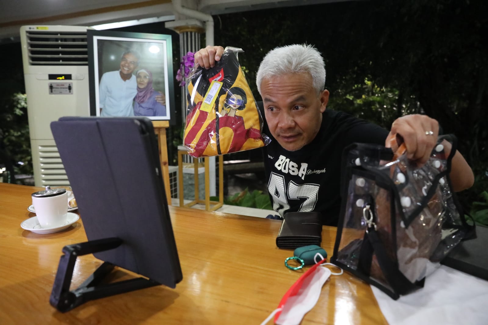 Ganjar memang menyiapkan hadiah untuk warga yang disapanya. Tak hanya barang elektronik dan sepeda, hadiah berupa produk UMKM Jateng juga disiapkan. Seperti dompet batik, hingga jaket kulit.
