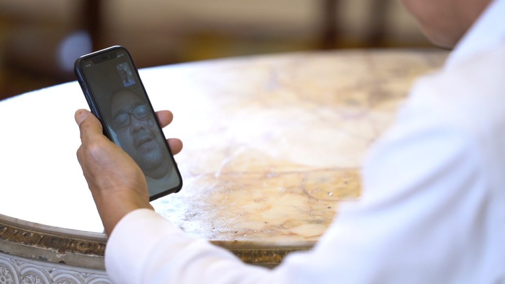 “Dokter Faisal lagi di mana? Sepertinya sedang tidak bertugas?” tanya Presiden di awal pembicaraan melalui sambungan video yang diunggah di saluran YouTube Sekretariat Presiden, pada Minggu pagi, 27 September 2020.