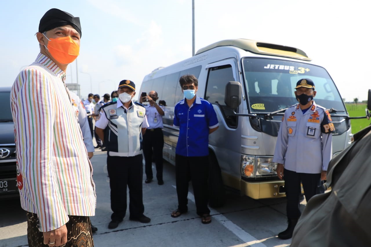 “Tadi ada travel, platnya luar Jateng tapi ngakunya dari Klaten. Ada selembar surat dari desa, tapi tidak ada tes antigen. Saya minta dites semuanya, karena ini penting menjaga kesehatan,” kata Ganjar.