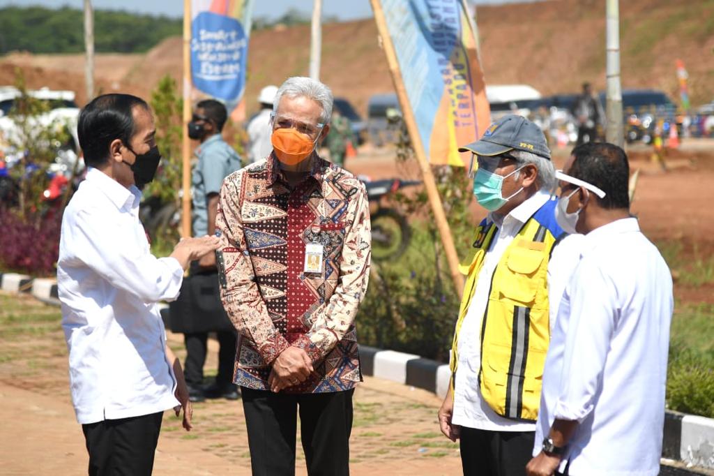 “Ini adalah kawasan industri di Batang yang nantinya akan dikerjakan seluas 4.300 hektare. Sekarang telah disiapkan dan hampir selesai ini 450 hektare yang akan dipakai untuk investasi-investasi terutama yang berkaitan dengan teknologi,” ujar Presiden usai peninjauan.