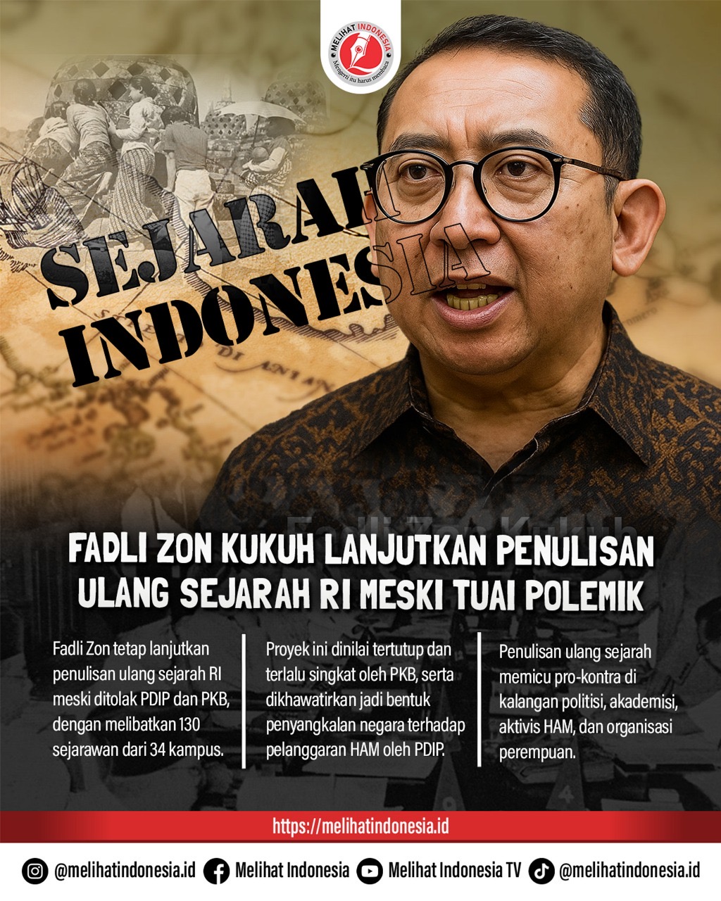 Fadli Zon Kukuh Lanjutkan Penulisan Ulang Sejarah RI Meski Tuai Polemik