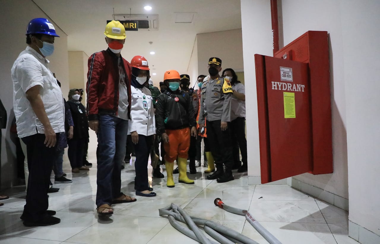 SEMARANG – Gubernur Jawa Tengah, Ganjar Pranowo meninjau langsung penanganan kebakaran yang melanda RSUP Dr Kariadi Semarang. Selain memastikan penanganan kebakaran, Ganjar juga memastikan pasien dan tenaga kesehatan semua dalam kondisi aman.