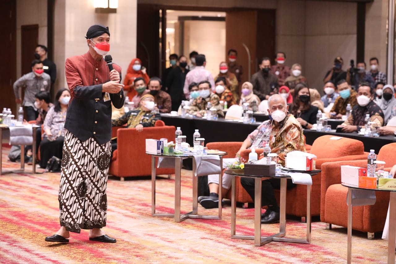SEMARANG – Gubernur Jawa Tengah Ganjar Pranowo segera membentuk tim Satgas TKDN (Tingkat Komponen Dalam Negeri) untuk mendorong produk lokal makin berkualitas. Di sisi lain, Ganjar menyebut pemerintah juga perlu menjadi offtaker agar penyerapan produknya cepat.