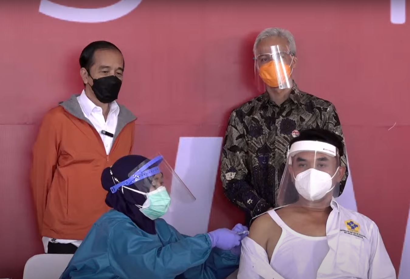 Ditemani Gubernur Jateng, Ganjar Pranowo, Presiden Jokowi melihat proses vaksinasi yang menyasar sebanyak 1.000 orang. Terdiri dari pekerja pelabuhan, masyarakat di sekitar pelabuhan, hingga warga difabel.