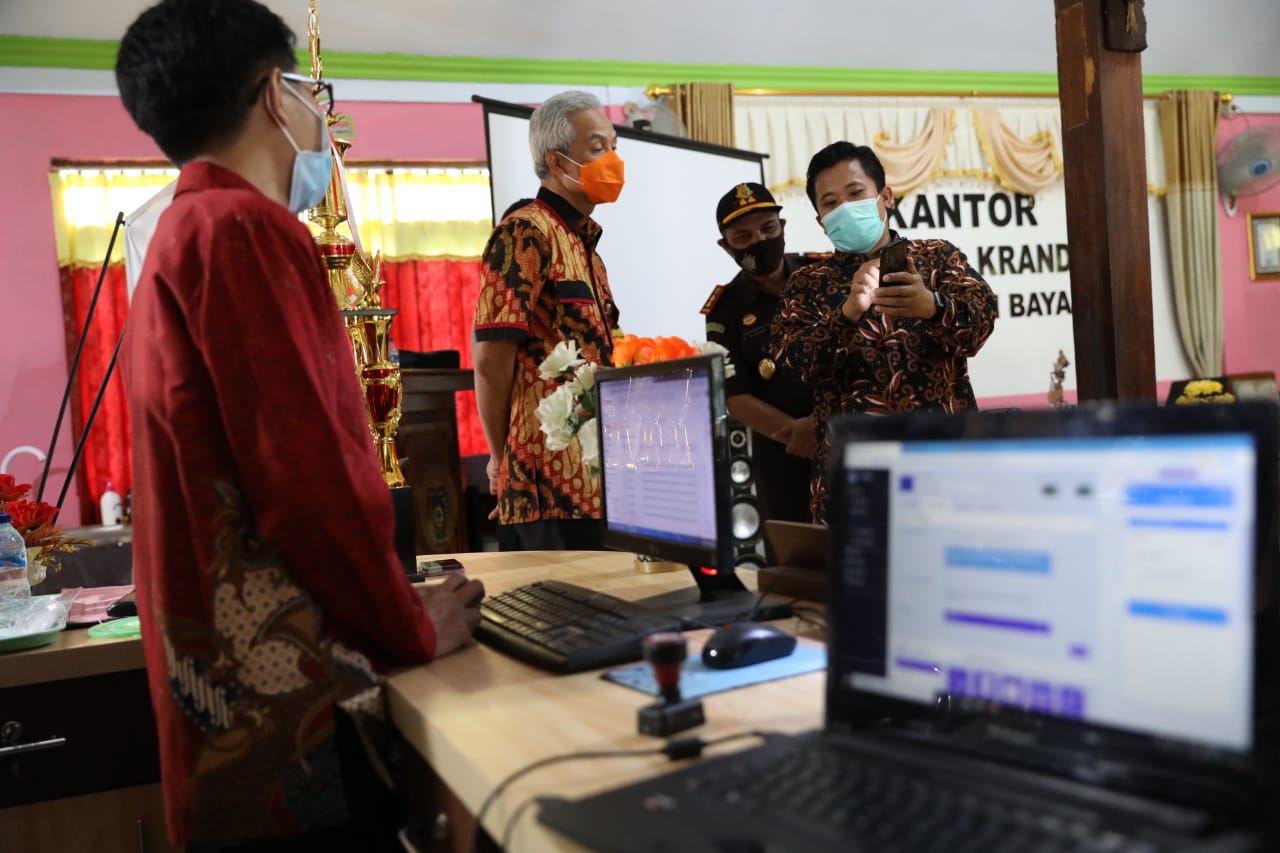 “Ini keren, bagus. Kadesnya kreatif sekali, dia membuat banyak sekali aplikasi yang tidak hanya memudahkan masyarakat tapi juga memunculkan lapangan kerja baru,” kata Ganjar.