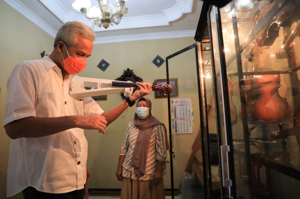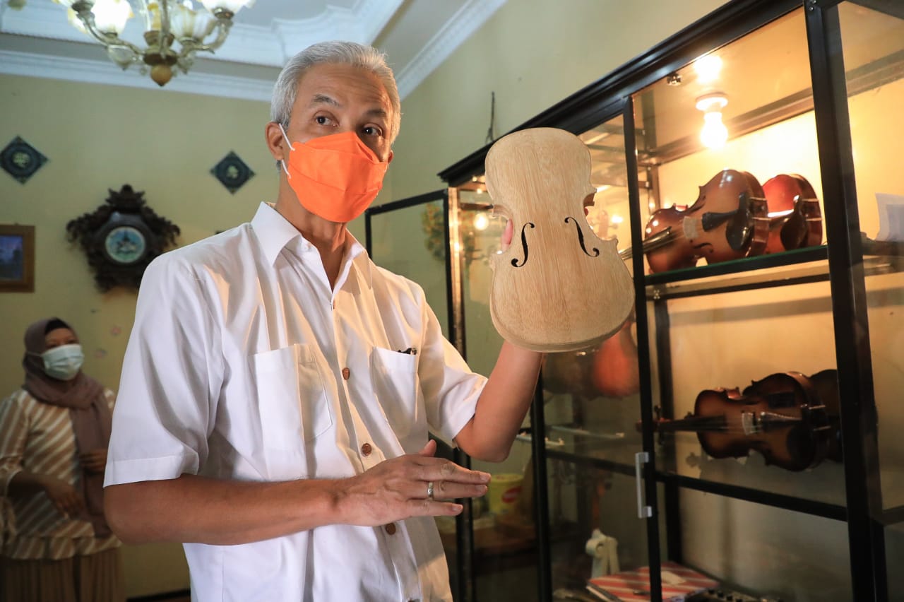 Hal itu juga yang membuat Gubernur Jawa Tengah Ganjar Pranowo menyempatkan diri untuk berkunjung ke rumah Mbah Min di Japan Wetan, Desa Japan, Kecamatan Dawe, Kabupaten Kudus, Rabu (12/5/2021). Di rumah yang berada di lereng Gunung Muria itu, Mbah Min biasa memproduksi biola dari bahan bambu dan bahan kayu.