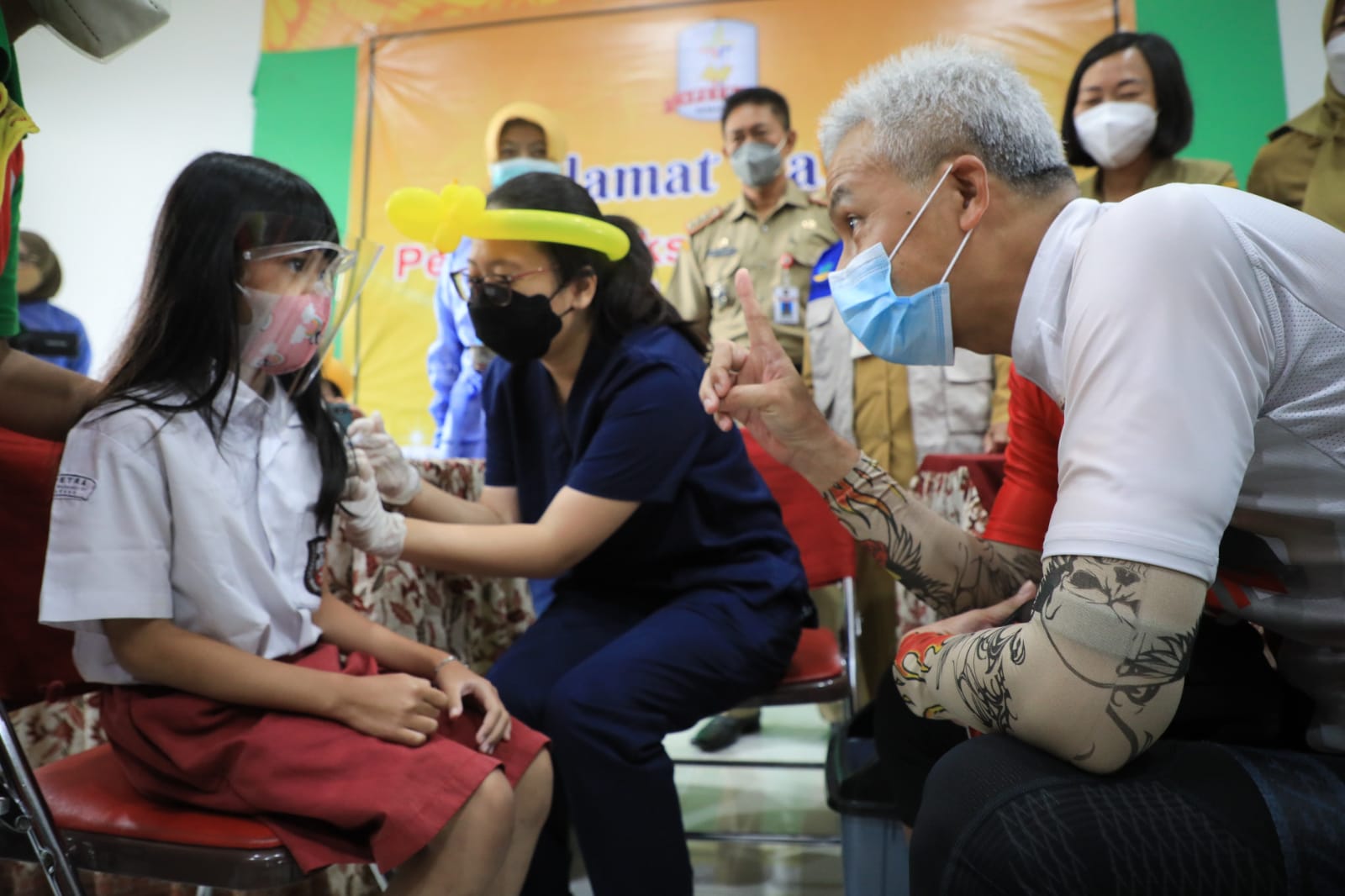 “Kita senang hari ini kalau nggak salah hari pertama mereka masuk. Jadi kalau saya melihat antusiasmenya anak-anak untuk divaksin menyenangkan,” tutur Ganjar.