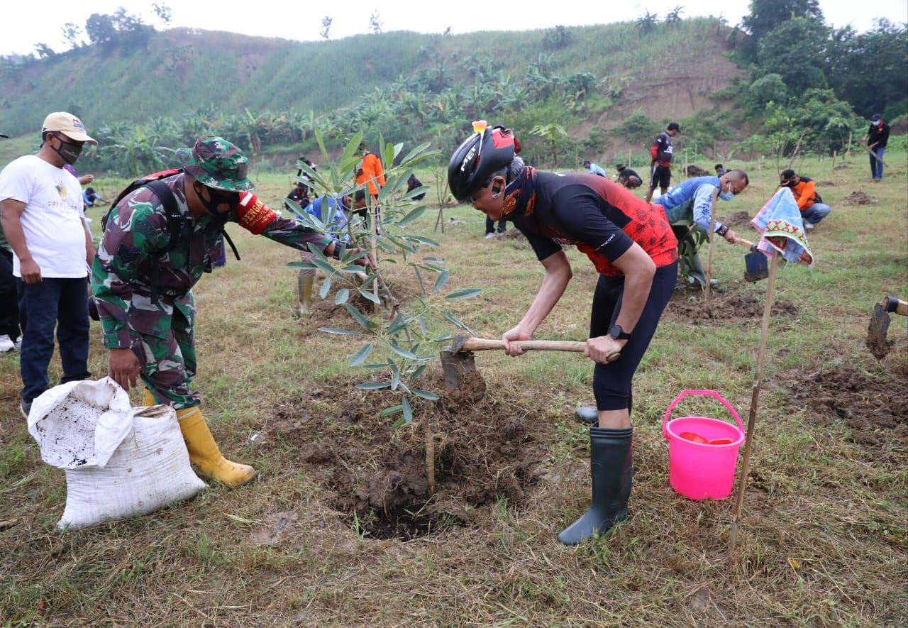 “Sekarang kita gerakkan terus dengan masyarakat untuk mau menanam di seluruh bantaran dan daerah aliran sungai. Harapannya tidak terjadi longsor, harapannya bisa semakin hijau, makin bagus. Titip ya Pak Kades, warganya diajak untuk tanam pohon.