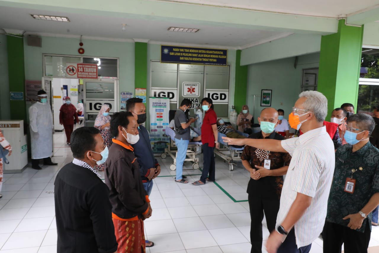 Salah satu lokasi sidak adalah RSUD Kartini Jepara. Di tempat itu, Ganjar menemukan ada pasien yang terlantar di depan ruang IGD karena rumah sakit penuh.