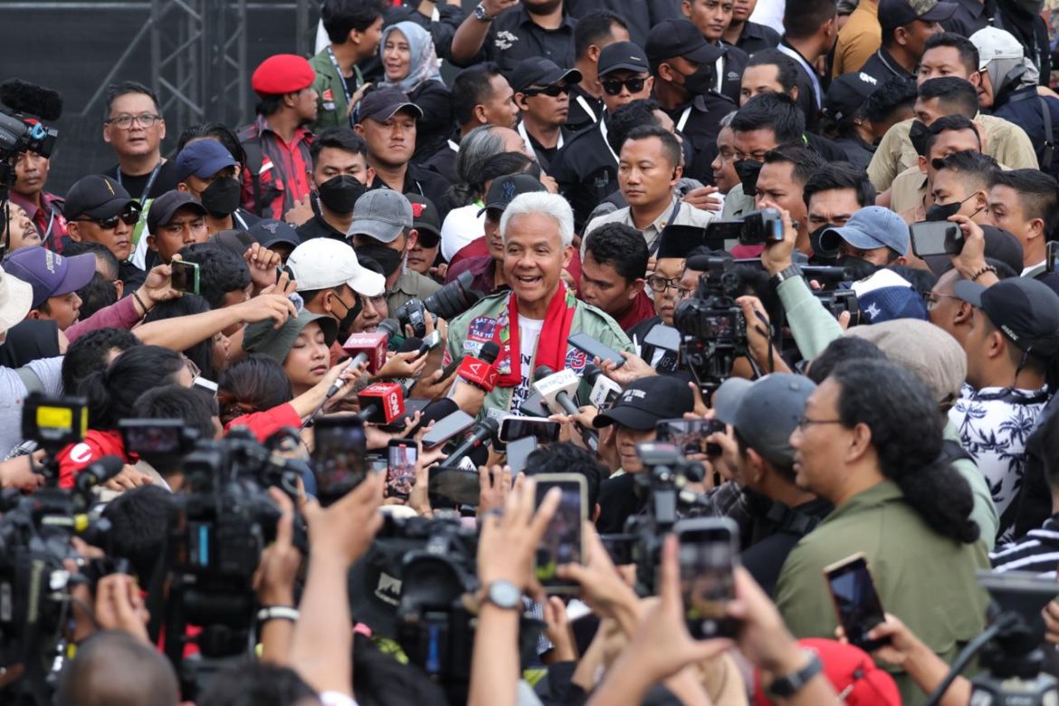 Kehadiran Ganjar memang sudah ditunggu oleh ratusan ribu pendukungnya yang telah memadati Lapangan Pancasila Simpang Lima, Kota Semarang, tempat acara berlangsung.