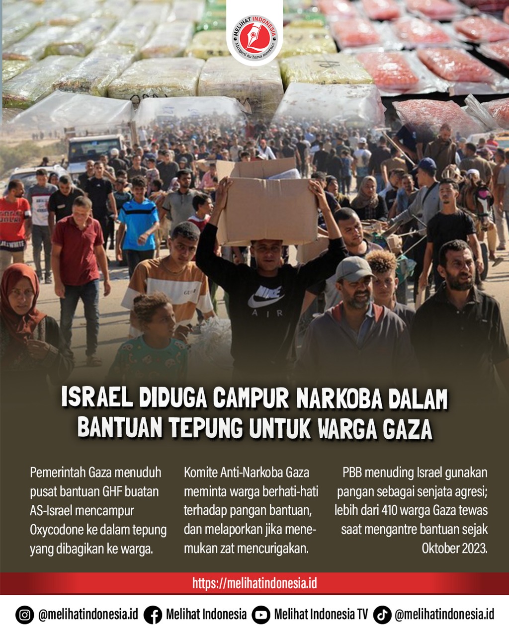 Pemerintah Gaza menuduh pusat distribusi bantuan kemanusiaan buatan Israel dan Amerika Serikat mencampurkan narkoba ke dalam tepung yang dibagikan kepada warga Gaza. Tuduhan ini disampaikan langsung oleh Kantor Media Pemerintah di Jalur Gaza, Palestina.