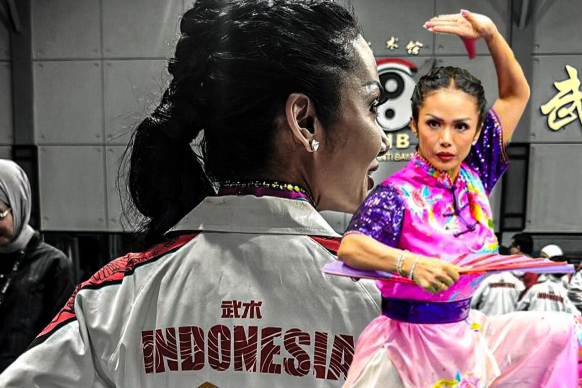 Dalam unggahan tersebut, Krisdayanti tampak mengenakan kostum wushu bernuansa Tionghoa modern berpadu warna pink terang, serta jaket tim Indonesia dengan logo Garuda di dada. Ia juga terlihat luwes mengibaskan kipas khas wushu, menandakan keseriusannya menekuni olahraga tersebut.