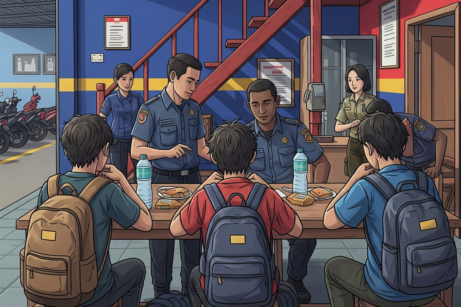 Petugas pemadam kebakaran kemudian menjemput dan membawa mereka ke pos untuk diamankan dan diberi edukasi. Di sana, mereka akhirnya menceritakan alasan mereka nekat kabur dari pesantren.