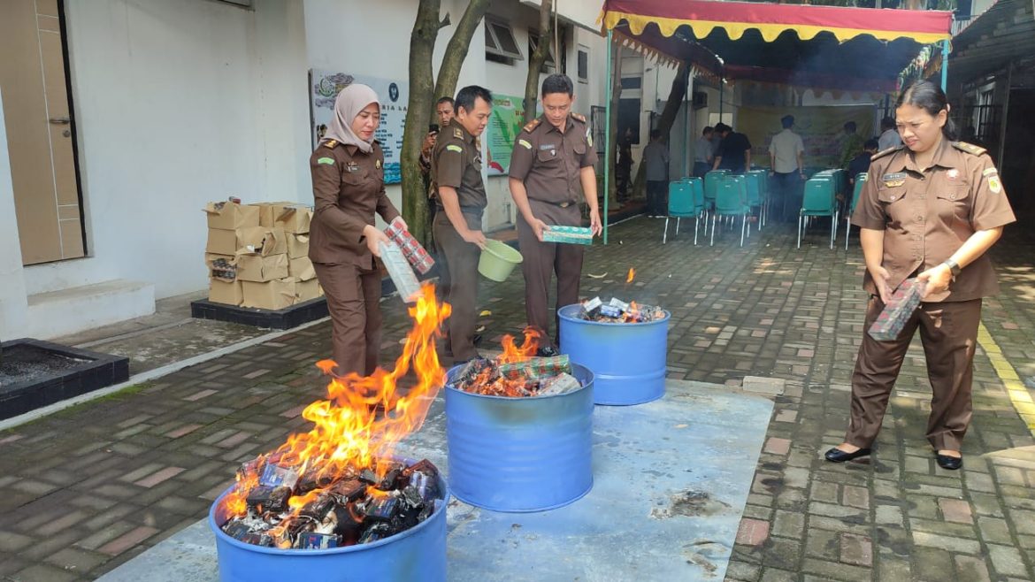 “Ribuan rokok ini mereknya macam-macam. Tadi semuanya kami bakar,” imbuh Rina.