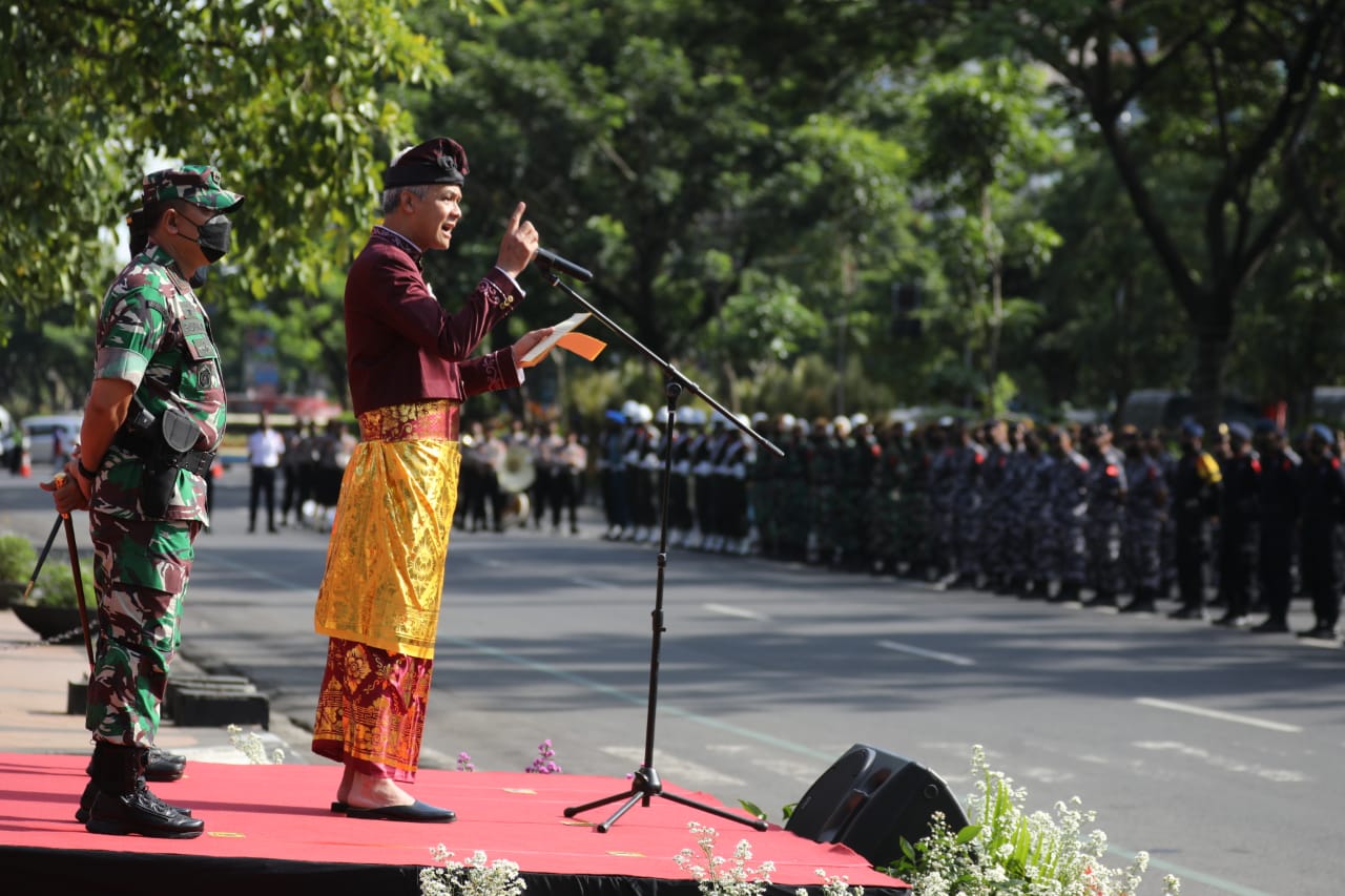 Hal itu disampaikan Ganjar, usai memimpin Apel Gelar Pasukan Operasi Kepolisian Terpusat Lilin Candi 2021 di Jalan Pahlawan, Semarang, Kamis (23/12). Berbusana adat Bali, Ganjar memimpin apel yang diikuti seluruh jajaran terkait.