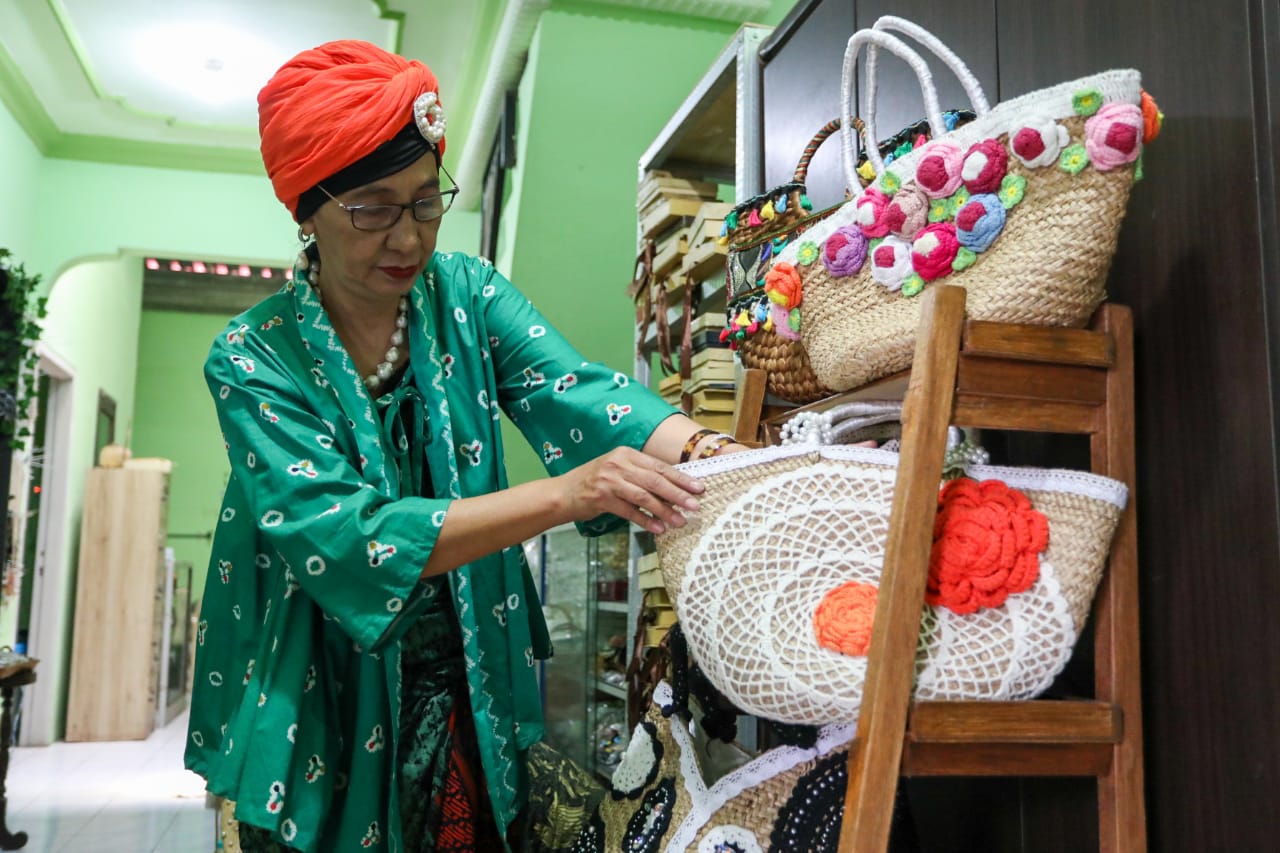 “Orang biasanya kalau beli tas rajutan kan biasa saja. Punya saya, saya kreasikan serat nanas, manik-manik, kristal supaya lebih kuat. Lebih ada keetnikannya. Tidak ada yang sama. Orang beli, bangga. Tidak ada yang nyamain,” jelasnya.