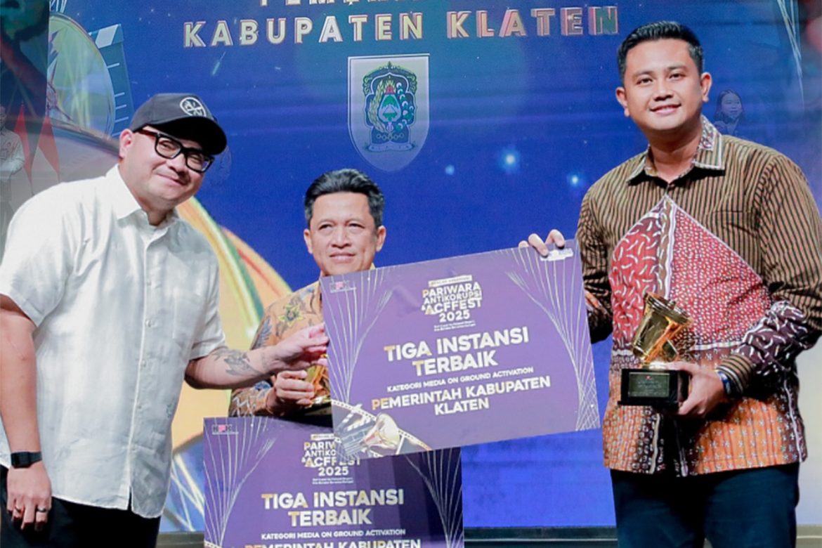 Komitmen Kabupaten Klaten dalam memperkuat gerakan antikorupsi kembali mendapat pengakuan secara nasional. Pada gelaran Puncak Apresiasi Pariwara Antikorupsi & ACFFest 2025 di Graha Bhakti Budaya, Taman Ismail Marzuki (TIM) Jakarta, Jumat (28/11/2025), Pemkab Klaten berhasil meraih Penghargaan Pariwara Antikorupsi 2025 kategori Media On Ground Activation dari Komisi Pemberantasan Korupsi (KPK) RI. Penghargaan tersebut diterima langsung oleh Bupati Klaten, Hamenang Wajar Ismoyo.