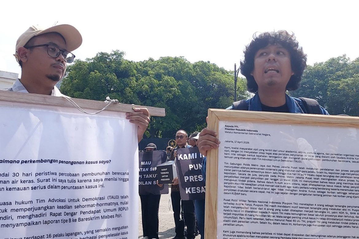 Koalisi masyarakat sipil menyerahkan surat desakan kepada Presiden Prabowo Subianto melalui Kementerian Sekretariat Negara. Surat tersebut termasuk pesan dari aktivis KontraS Andrie Yunus, korban penyiraman air keras.