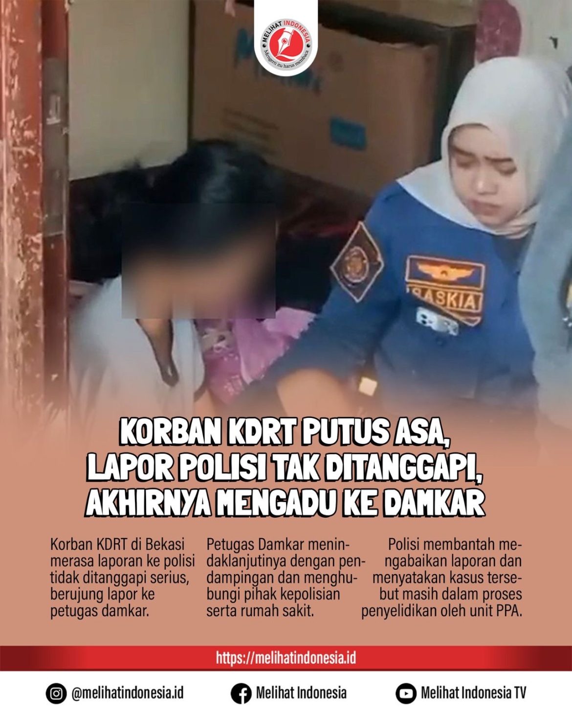 Seorang wanita muda berinisial D (26) asal Bekasi menjadi korban kekerasan dalam rumah tangga (KDRT) yang dilakukan oleh suaminya. Ia sudah melaporkan kejadian tersebut ke polisi pada Jumat, 20 Juni 2025, namun merasa tidak mendapatkan tanggapan yang jelas. Setelah beberapa hari, ia hanya menerima balasan singkat berupa janji akan dikabari.