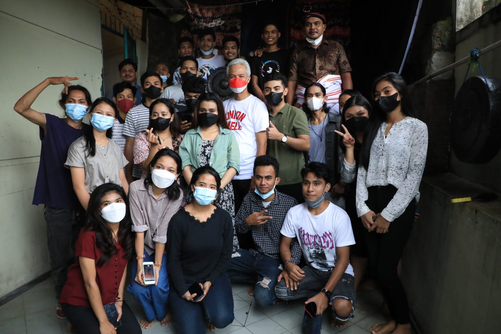 Setelah itu, Ganjar mengunjungi asrama mahasiswa Sumba NTT. Di sana, Ganjar disambut dengan alunan musik dan tarian khas Sumba. Ganjar juga dihadiahi kain khas dan parang oleh para mahasiswa itu.