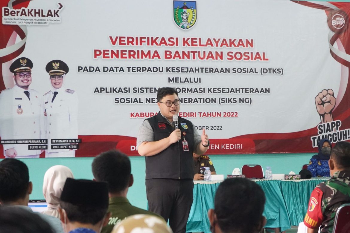 Mas Dhito sapaan akrab Bupati Hanindhito menjelaskan, pengawasan terhadap proses verifikasi dan validasi data penerima bantuan sosial ini penting dilakukan supaya penyalurannya tepat sasaran.
