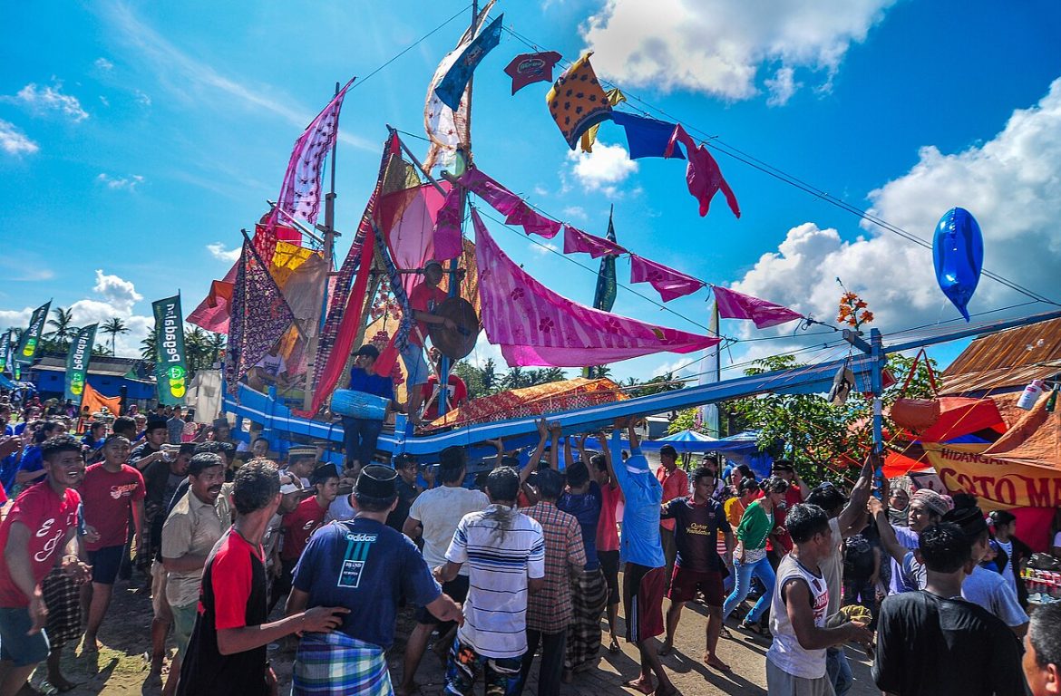 Keistimewaan Maudu Lompoa terlihat dari “julung-julung,” perahu kayu yang dihias dengan kain warna-warni. Julung-julung ini bukan sekadar ornamen, melainkan simbol penting yang menggambarkan masuknya ajaran Islam ke wilayah Cikoang melalui jalur perdagangan.
