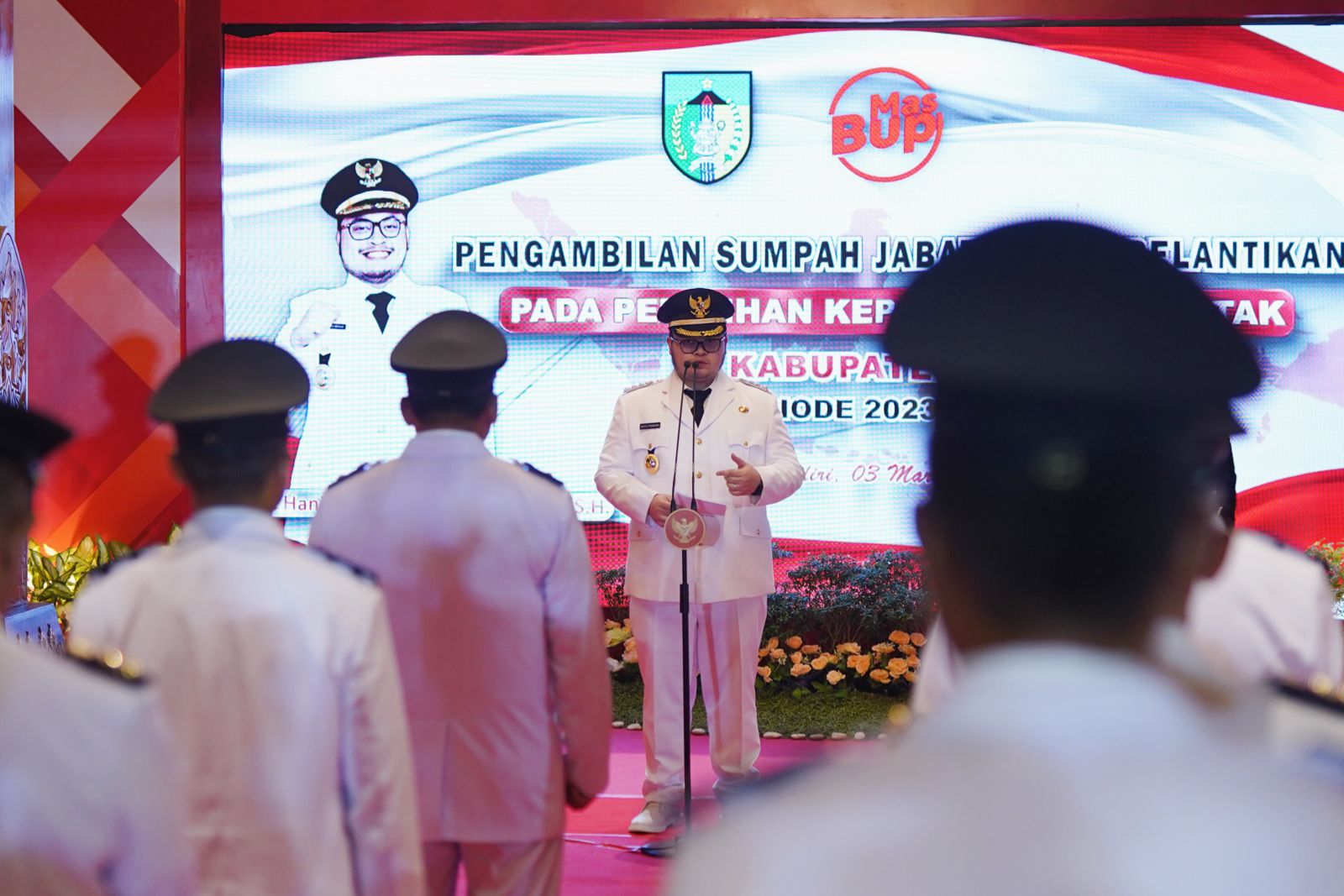 Kediri – Bupati Kediri Hanindhito Himawan Pramana berharap 57 kepala desa yang dilantik dan diambil sumpahnya dapat bekerja dengan amanah dan dapat mengembalikan tingkat kepercayaan masyarakat.