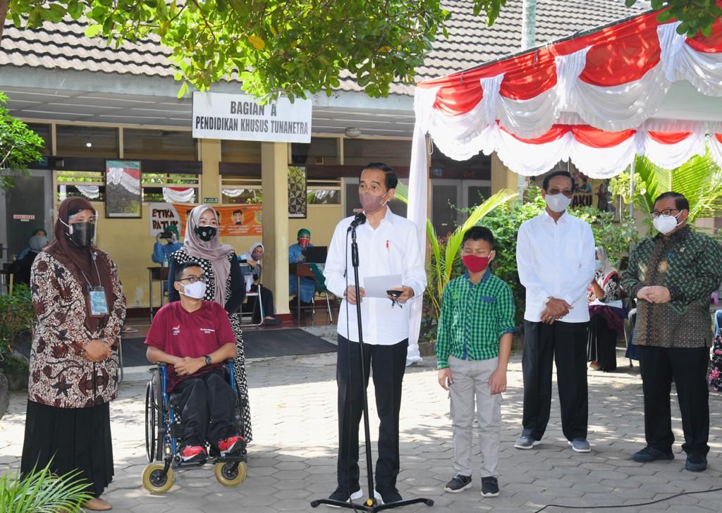 Presiden RI Joko Widodo (Jokowi) saat tinjau vaksinasi di SLB Bantul DIY, Jumat (10/9/2021)