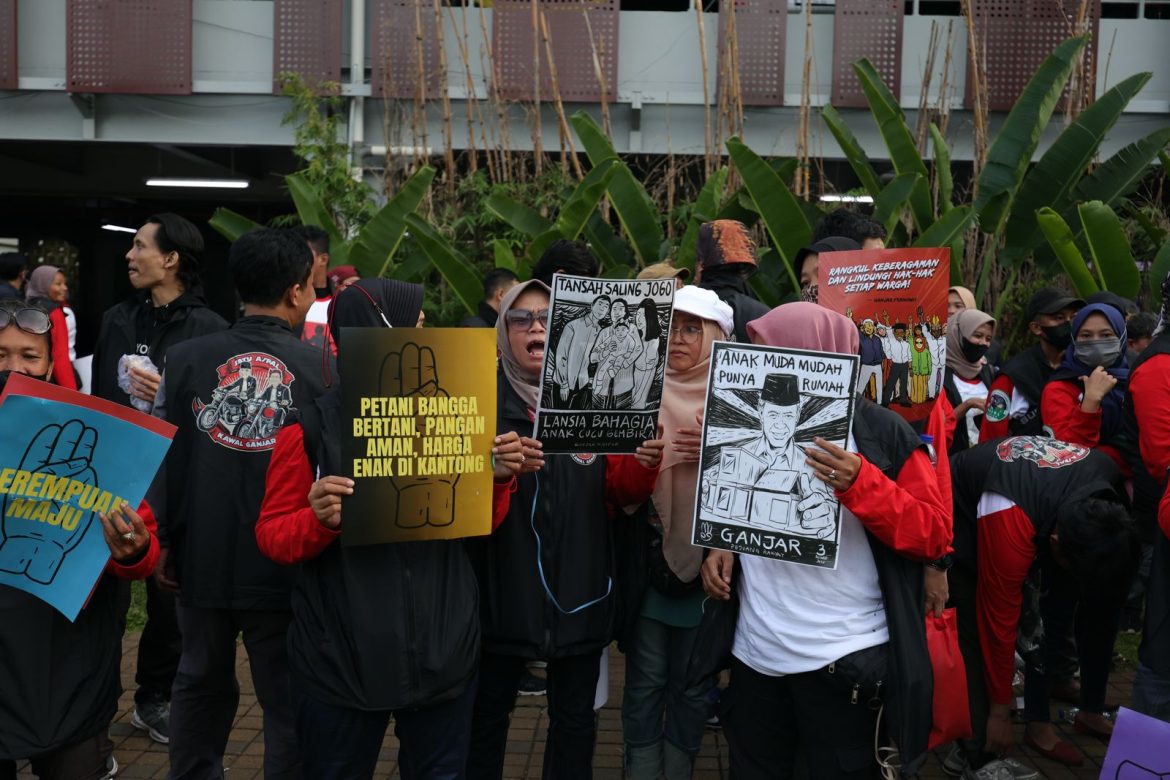 Dalam debat kali ini, ratusan pendukung Ganjar Mahfud sudah memenuhi lokasi JCC sejak siang hari. Mereka terus bernyanyi dan berjoget dengan penuh semangat.