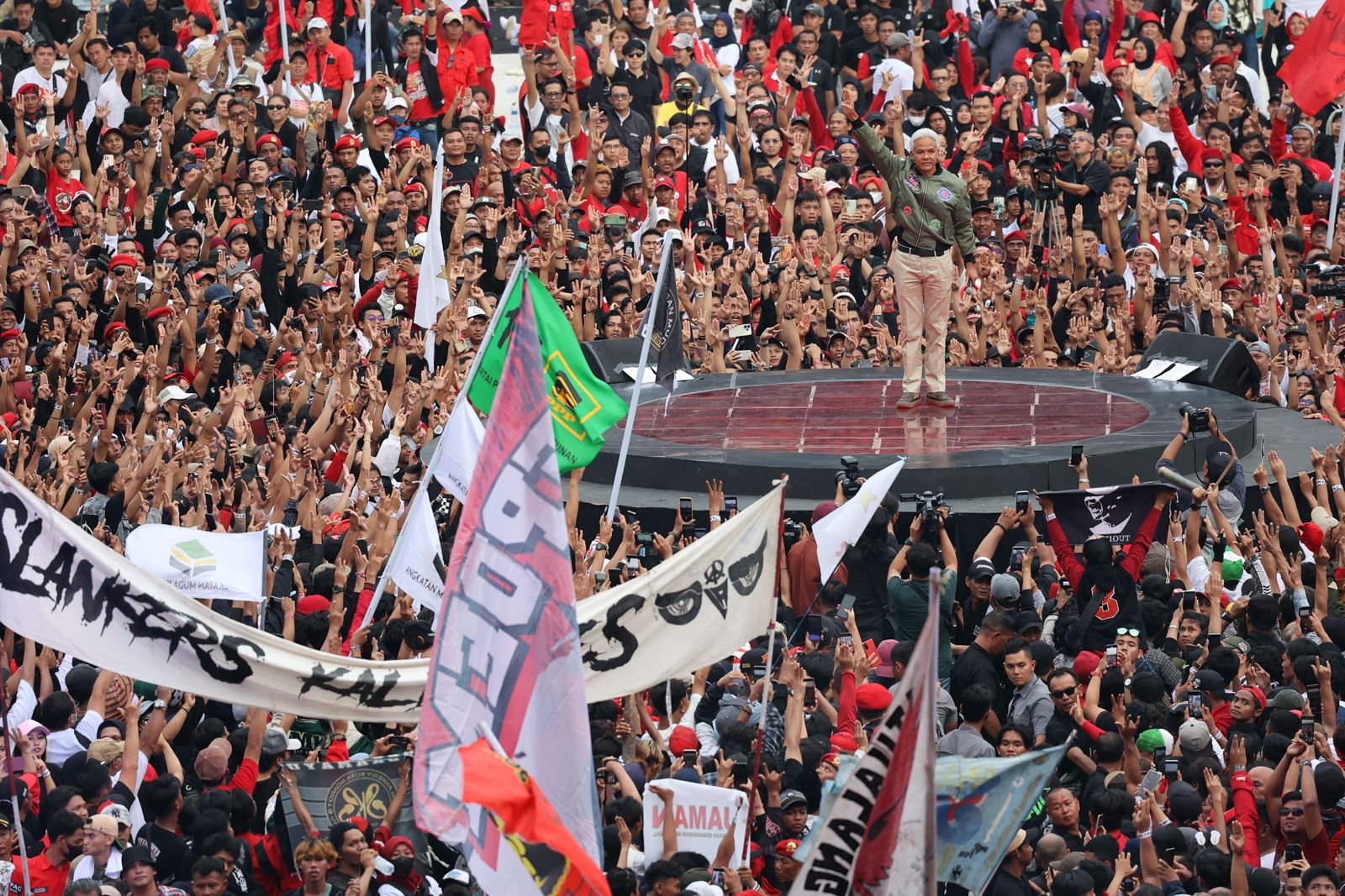 Sejak pagi hari, massa yang datang dari berbagai daerah di Indonesia itu sudah memadati jalanan Ibu Kota Jakarta. Bus besar dan kendaraan pribadi berbaliho Ganjar berjalan beriringan menuju stadion kebanggaan Indonesia itu.