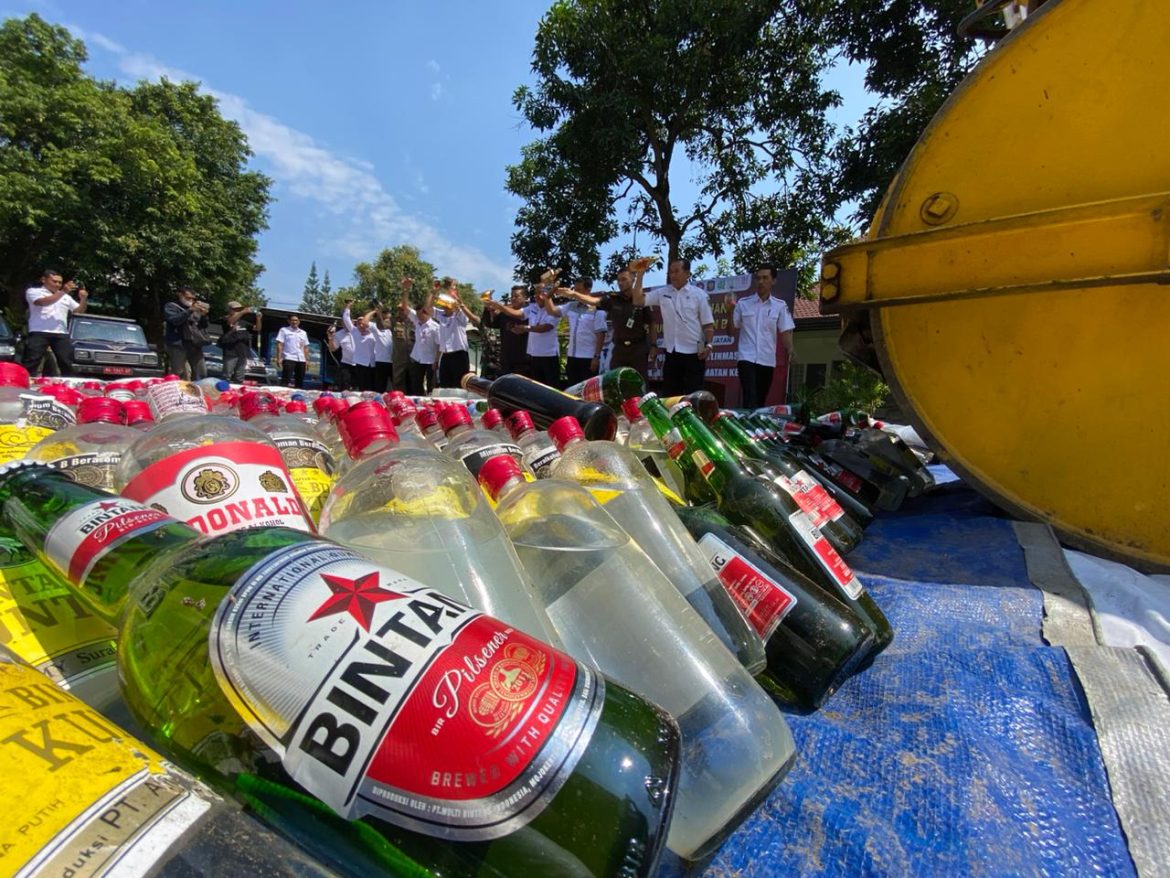 Kediri – Pemerintah Kabupaten Kediri memusnahkan ribuan minuman beralkohol hasil operasi Satuan Polisi Pamong Praja (Satpol PP) Kabupaten Kediri.