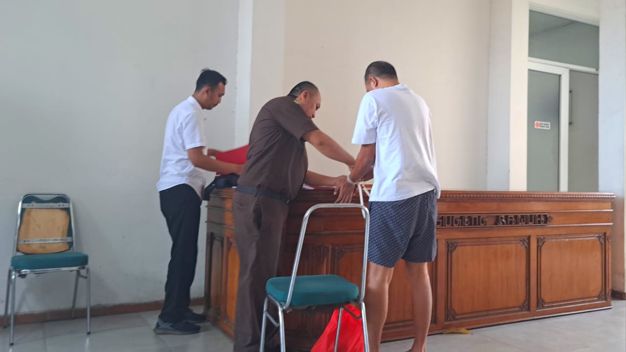 Dengan mengenakan kaus oblong bercelana kolor dan dalam kondisi tangan terborgol, tersangka Icuk dicecar berbagai pertanyaan oleh penuntut umum.
