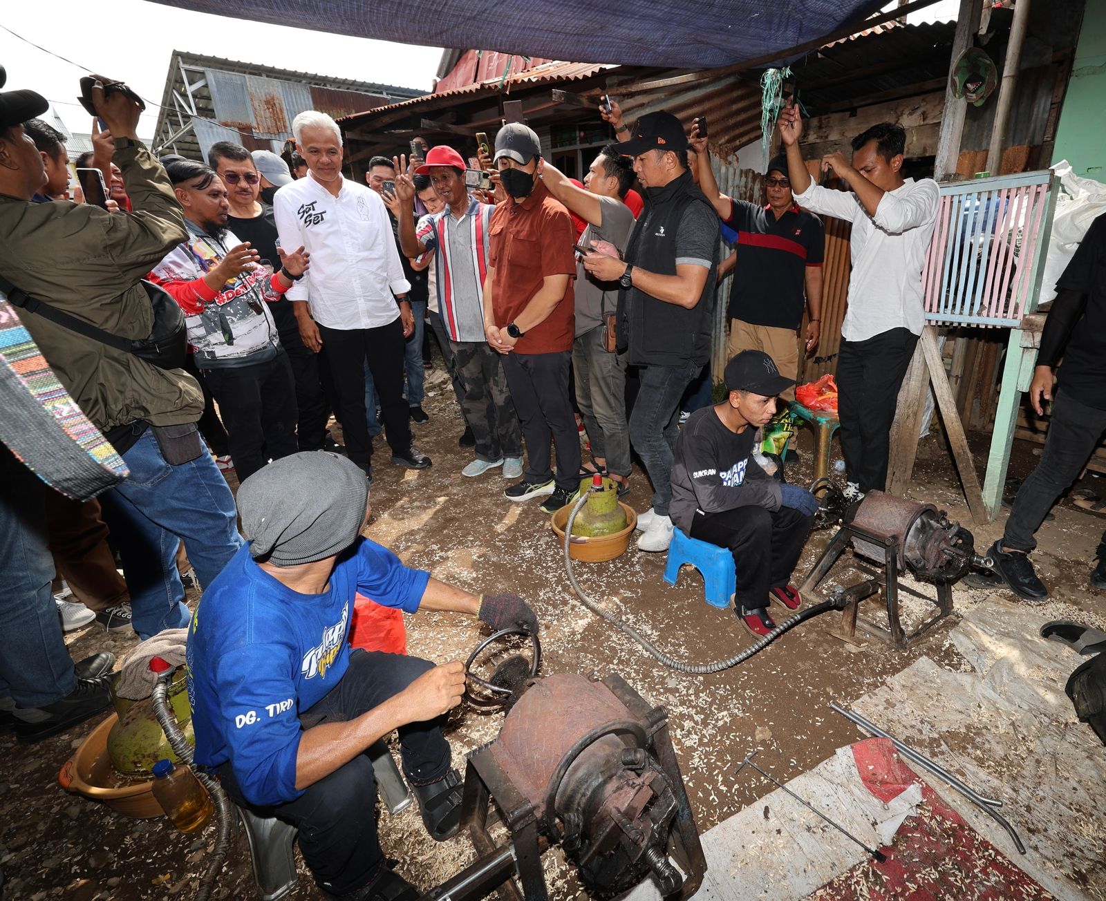 Mengenakan kemeja ‘Sat-Set’, Ganjar tiba melihat proses pembuatan Bipang. Saat datang, banyak warga yang sedang membuat Bipang langsung heboh karena kampung mereka didatangi Ganjar.