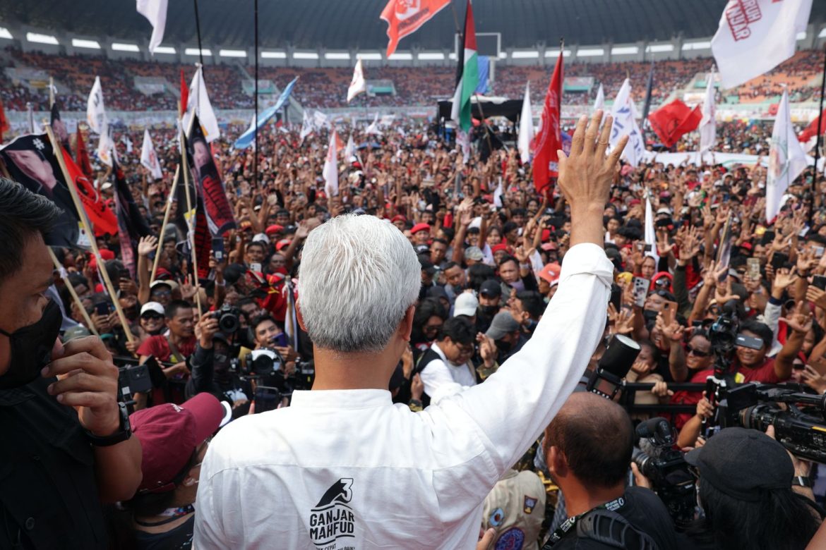 Baik Ganjar, Atikoh dan Alam menghindari akses khusus untuk menuju panggung utama. Mereka justru memilih berjalan membelah massa yang memadati stadion. Suasana pun pecah, massa merangsek berebut jabat tangan dan mengarahkan kamera ponselnya untuk mengabadikan momen itu.