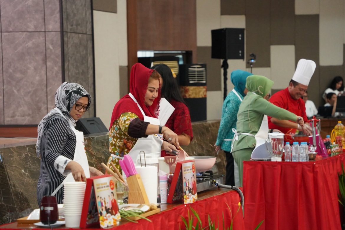 Mbak Ita melakukan demo masak bersama Penasehat DWP BKKBN, Dr Reni Hasto Wardoyo, Ketua TP PKK Provinsi Jawa Tengah, Sinta Nana Sudjana dan Ketua Persit Chandra Kirana Daerah IV/Diponegoro, Sandy Deddy Suryadi.