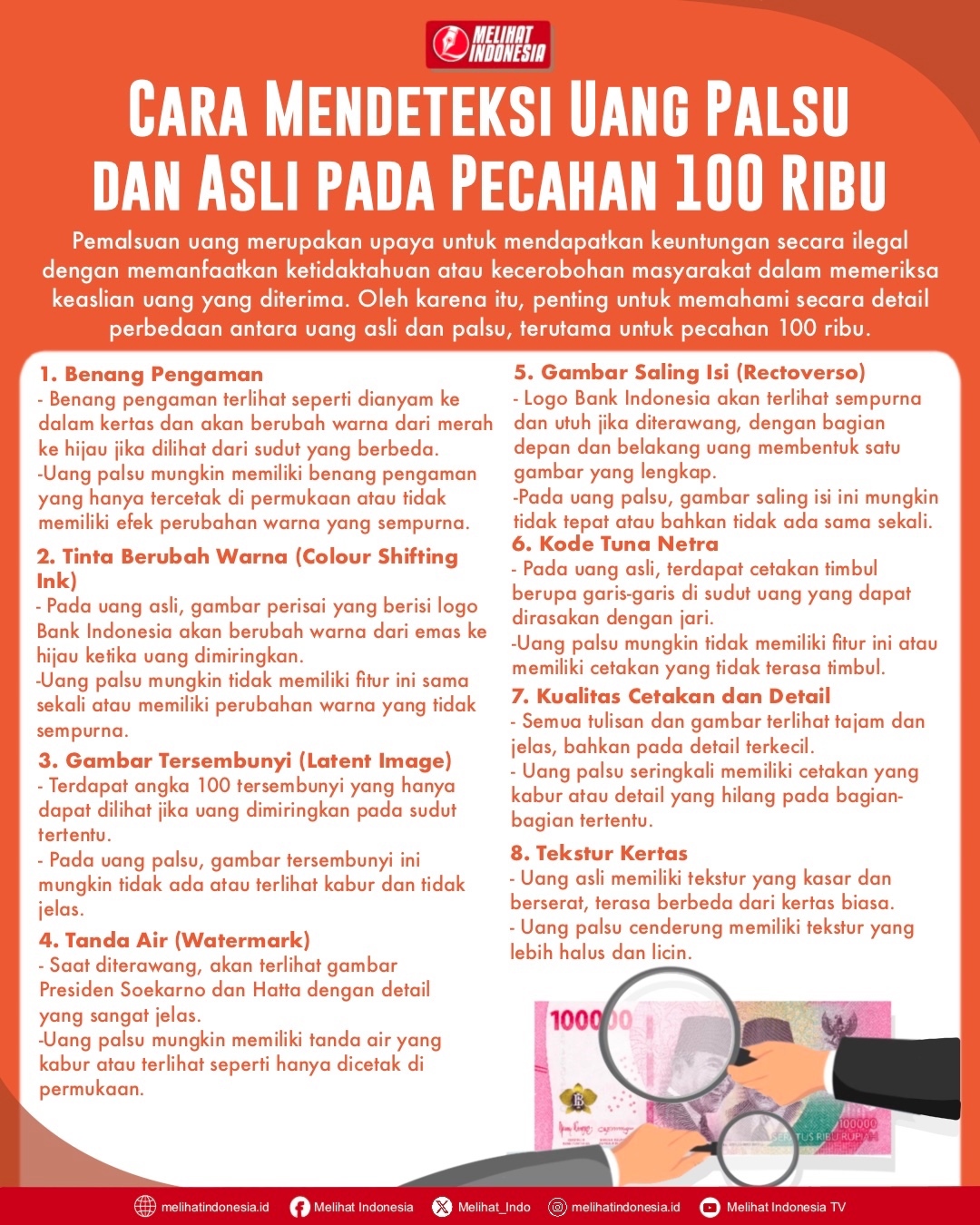 Oleh karena itu, penting untuk memahami secara detail perbedaan antara uang asli dan palsu, terutama untuk pecahan Rp100 ribu.