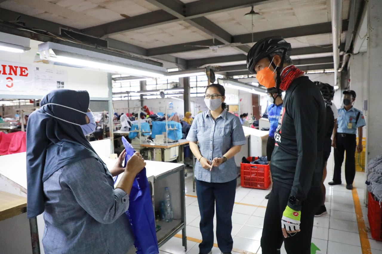 Dua pabrik yang dikunjungi Ganjar disela gowes pagi itu adalah PT Arindo Garmentama di Jalan Karya Kencana Blok K/9 dan PT Marimas Putera Kencana di Jalan Candi I Blok D21. Kunjungan itu untuk memastikan bagaimana kondisi di beberapa pabrik pada masa pandemi Covid-19 sekaligus melihat produksi dan berbincang dengan para buruh.