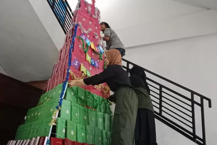 MELIHAT INDONESIA, PURWOKERTO – Berbagai cara dilakukan masyarakat untuk menyambut perayaan Hari Natal, salah satunya dengan membuat pohon Natal yang menarik. Di Purwokerto, Kabupaten Banyumas, terdapat pohon Natal yang sangat berbeda, terbuat dari ratusan skripsi mahasiswa.